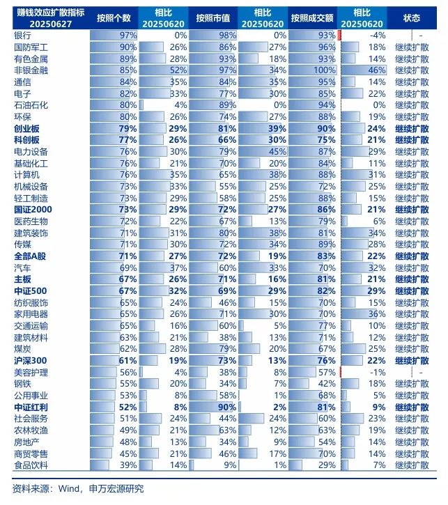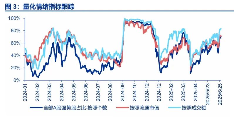但也要承认,当下行情距离牛市启动仍有差距。主要体现在两方面:1. 总量基本面预期偏弱。6月抢出口提前走弱,国内稳增长发力重新成为主要矛盾,市场担心宏观支撑力空窗期。结构性改善方面,科技中级别上涨,还欠缺重磅催化。新消费前期赚钱效应也已充分扩散,基本面新增变化也有限。科技和消费短期都属于反弹行情。2. 各类资金预期依然割裂,交易性资金活跃度提高,而关注基本面趋势的投资者仍相对谨慎,这种割裂与2024年10月类似。中期来看,机构投资者赚钱效应累积仍不足,居民资金全面入市时机未到。